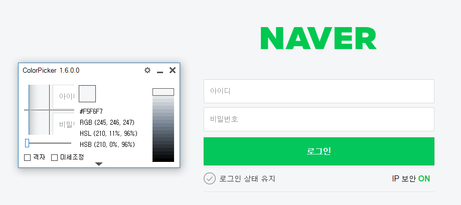 color cop에서는 #FFF로 나오던 것이 Color Picker에서는 #F5F6F7이 나왔으며,